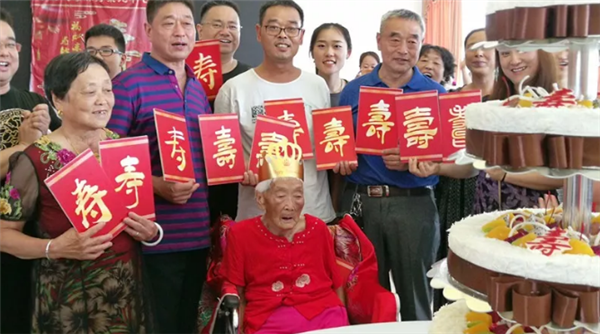 芬芳的生日花篮、满桌的桃李瓜果、香甜的生日蛋糕、亲人们脸上掩饰不住的洋洋喜气,汇成了温馨喜庆的暖流。8月11日一大早,太和县城关镇吴营社区后徐庄陈秀荣老人的子孙们都从四面八方赶回家中,齐聚在她身边,一起迎来了老人的97岁生日。