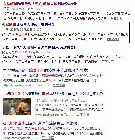 三是容易诱发交通事故。每年因在公路上晒稻谷而引发的交通事故案例也很多。公路当晒场,人员混杂,特别是有些儿童在路上玩耍,一些扫帚、谷耙等工具随意放在路上,有的村民用石头、木料圈占地盘,强逼车辆绕行通过,埋下了种种事故隐患;