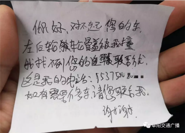 阜阳男子留小纸条“对不起刮到你的车了...” 结果......