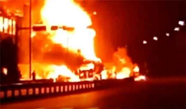 阜阳颍上县一油罐车起火引燃车辆和民房致8死4伤