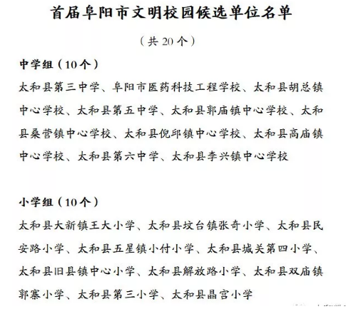 太和县首届阜阳市文明校园候选学校名单公示